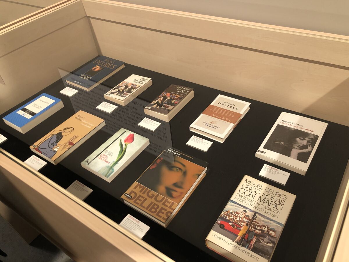 «Cinco horas con Mario» es una exposición que abarca un amplio recorrido por una de las obras más conocidas y emblemáticas de Miguel Delibes. Recoge cartas, fotografías y documentos relacionados con la obra, así como varias traducciones a otros idiomas, su adaptación en forma de ópera y un espacio dedicado a la representación teatral y la figura de la actriz Lola Herrera, que interpreta el personaje desde hace más de 40 años.