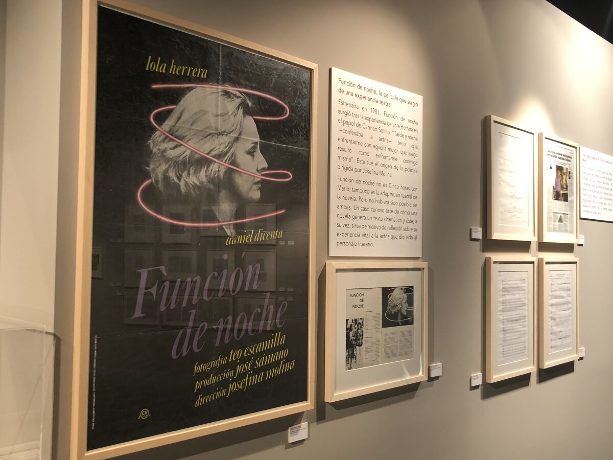 La muestra está dividida en cuatro partes que hablan de cómo surgió la novela o el reconocimiento que tuvo por parte de otros escritores como el éxito del público que le llevó a hacer diversas ediciones y traducirla a varios idiomas. También se aborda su repercusión en la prensa española y extranjera y diferentes estudios a lo largo de estos años. Por último, se centra en la adaptación teatral, que ha tenido tanto éxito durante más de 40 años, y la película dirigida por Josefina Molina, «Función de noche», basada en esta representación, a medio camino entre el documental y la ficción. En este último apartado se incluye igualmente documentación sobre la ópera inspirada en esta obra, del compositor Jorge Grundman, de la cual se exponen documentos originales y algunas partituras.