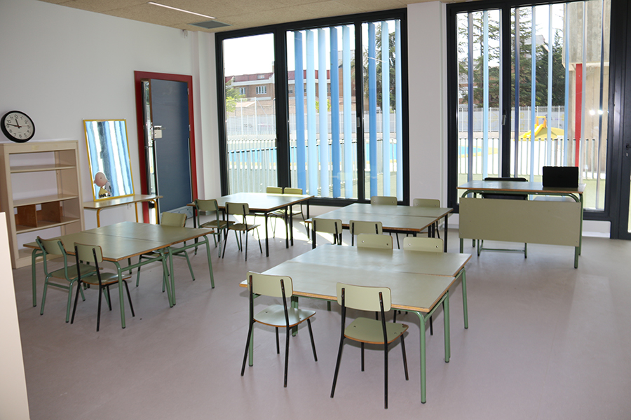 La zona de administración cuenta con cuatro despachos para el equipo directivo y de orientación, conserjería, salas de visitas, sala de profesores y sala para el AMPA y la Asociación de alumnos. Finalmente, existen espacios para los servicios comunes, como los cuartos de telecomunicaciones, limpieza, calefacción, almacén, etc. El nuevo Centro de Educación Infantil y Primaria también cuenta con comedor y cocina, y espacios exteriores con zona de juegos, pista polideportiva, aparcamiento y zona ajardinada.