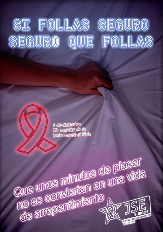 Juventudes Socialistas de Burgos ha puesto en marcha, con motivo del Día Mundial de la lucha contra el VIH, la campaña «Si follas seguro, seguro que follas». Así ha querido recuperar el lema que ya realizó años antes con la intención de llamar la atención a los y las jóvenes y concienciar una vez más sobre los peligros que puede entrañar el sexo si no se practica de forma segura.