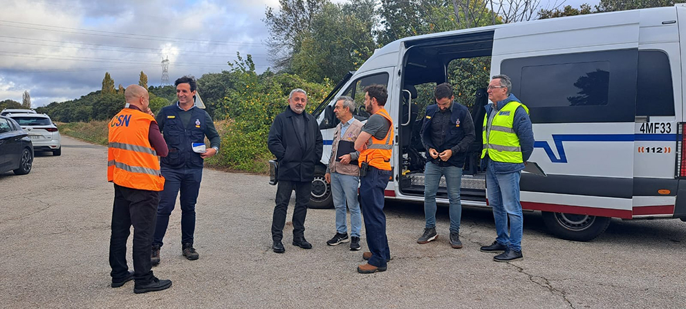 Efectivos de la Guardia Civil y la Ertzaintza, apoyados por técnicos del Consejo de Seguridad Nuclear y coordinados desde la Unidad de Protección Civil de la Subdelegación del Gobierno en Burgos, con el equipo de apoyo logístico de Cruz