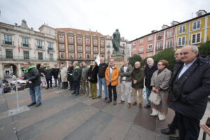 Han sido muchos los que se han acercado a la Plaza Mayor de Burgos, convocados por Socibur, para pedir una vez más al Gobierno la reapertura del “tren directo” Madrid-Aranda-Burgos.