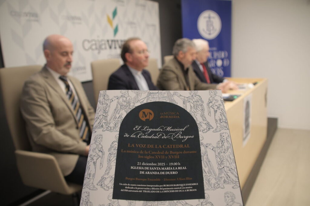 Este domingo 21 de diciembre, a las 19:00 horas, la Iglesia de Santa María la Real de Aranda de Duero acogerá el último concierto del ciclo La Música Dormida, una iniciativa de la Fundación Consulado del Mar que, junto al patrocinio de Fundación Caja Rural y el apoyo del Cabildo Metropolitano y la Archidiócesis de Burgos, ha recuperado valiosas obras inéditas del archivo musical de la Catedral de Burgos.