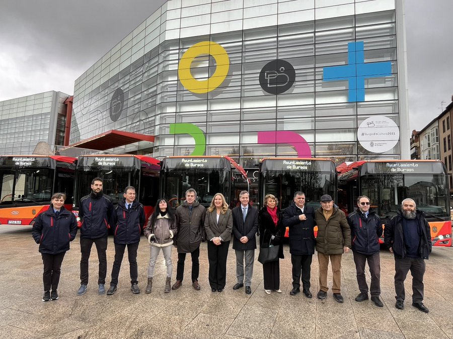 El Ayuntamiento de Burgos ha incorporado cinco nuevos autobuses de gas natural comprimido a la flota municipal de transporte urbano, una actuación que refuerza la apuesta del Consistorio por una movilidad más sostenible, segura y eficiente. La presentación de los vehículos ha corrido a cargo de la alcaldesa, Cristina Ayala, junto al presidente del Servicio Municipalizado de Movilidad y Transportes, César Barriada.
