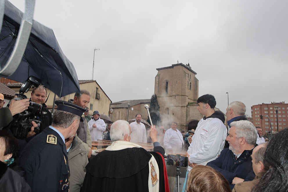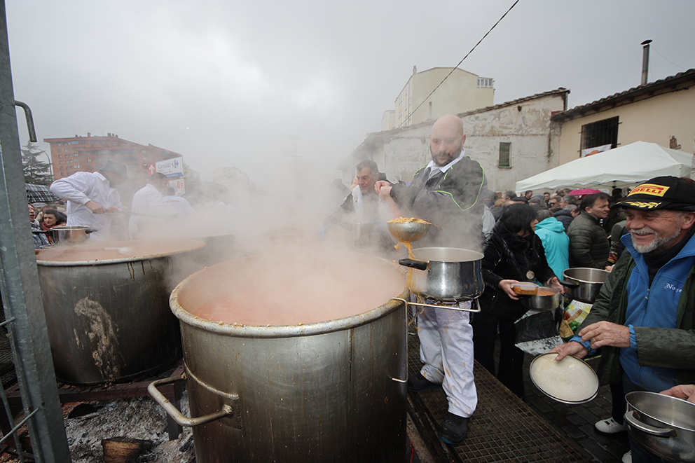 La Cofradía de San Antón lleva días preparando las más de 20.000 raciones de esta legumbre que se reparten esta mañana. La receta se mantiene en el tiempo. A los 2.000 kilos de titos, se suman 250 kilos de ajos, 250 kilos de cebolla, 1.500 guindillas y 1.500 pimientos choriceros, 180 litros de aceite de oliva, 50 kilos de sal, 15 kilos de laurel, 15 kilos de pimentón dulce y otros tantos de picante. A esto, se suman 6.000 kilos de leña que se encendía a las ocho de la mañana y 17 grandes perolas para su cocción.