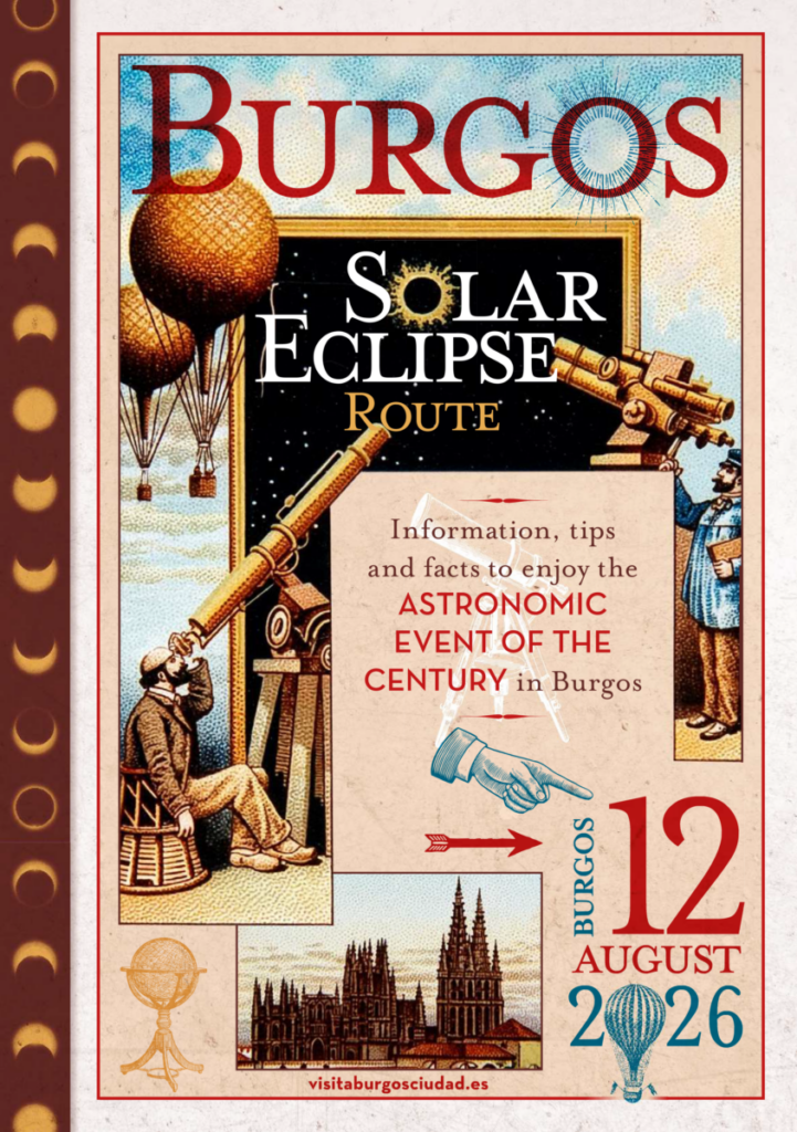 La propuesta de Burgos en FITUR incluirá asimismo la presentación de contenidos vinculados al eclipse total de sol del 12 de agosto de 2026, un acontecimiento de alcance internacional que situará a la ciudad como punto destacado de observación. En este contexto, se avanzará información dirigida especialmente al público extranjero que ya ha confirmado su visita a Burgos durante esa semana, con materiales divulgativos pensados para facilitar la planificación de la estancia, principalmente en lengua inglesa.