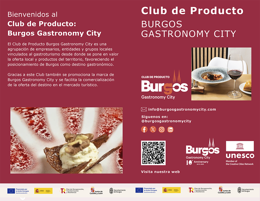El Club de Producto Burgos Gastronomy City agrupa a hosteleros, productores, empresas del ámbito gastronómico y entidades formativas vinculadas al sector, con el objetivo de planificar y visibilizar de forma coordinada la oferta gastronómica de Burgos. Entre sus líneas de actuación se encuentra la participación de las entidades y empresas integradas en el club en ferias especializadas como Madrid Fusión, como instrumento para la promoción del destino en el ámbito profesional y ante el público final.