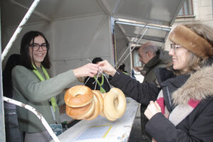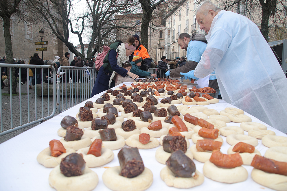 En los exteriores, música, bailes tradicionales, panecillos y jarras de vino, que hacían más llevadera la mañana, como es habitual en estas épocas del año. Con el baile en la Plaza de San Juan de los Danzantes y Tetines y los Gigantillos, a los que les costó mantener el tipo por el fuerte viento, concluían los actos institucionales de la jornada, aunque el reparto de roscos y pinchos ha continuado hasta bien entrada la mañana.