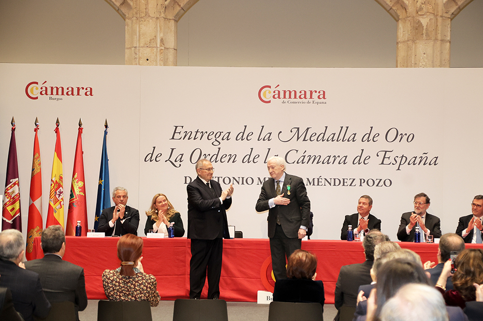 El acto contó además con la intervención del presidente de la CEOE, Antonio Garamendi, quien destacó la visión, el legado y el compromiso social del homenajeado. Finalmente, el presidente de la Cámara de España, José Luis Bonet, fue el encargado de imponer la Medalla de Oro, subrayando el papel de Méndez Pozo como referente del sistema cameral y su prolongada dedicación al servicio del interés general y al impulso del nombre de Burgos dentro y fuera de España.