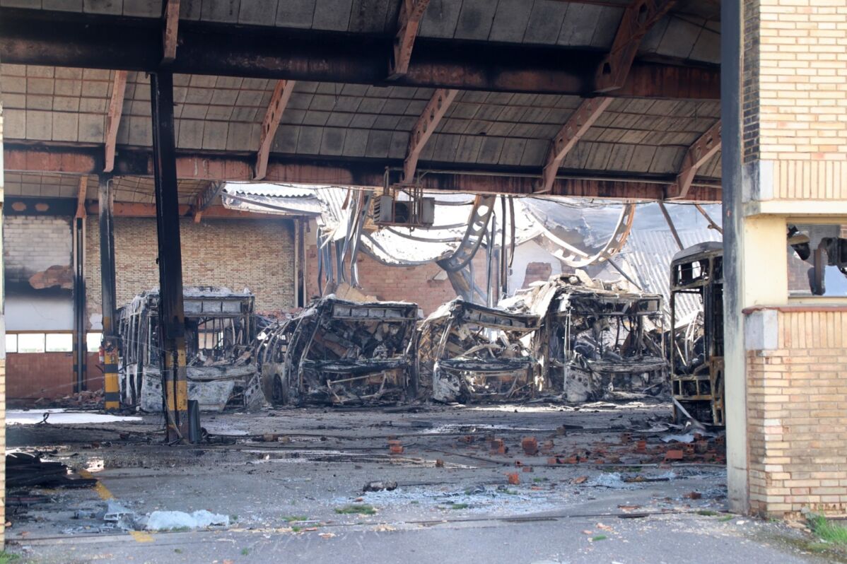 Un incendio en las cocheras de Burgos deja 39 autobuses afectados y obliga a reorganizar todo el servicio