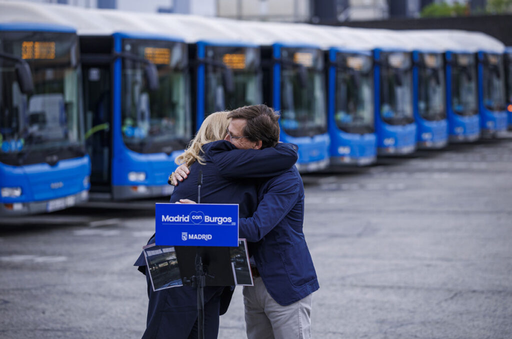 Y por eso al ver las imágenes del trágico e incendio en Burgos “inmediatamente entendimos que teníamos que hacer algo”. Dicho y hecho. “Teníamos que ponernos en contacto con la alcaldesa de Burgos para ofrecerle los medios y la disponibilidad a la empresa municipal de transportes. Lo hacemos por la convicción de que hay que ayudar, pero también porque nosotros fuimos los primeros que hemos recibido ayuda cuando peor lo estábamos pasando. Recibimos ayuda durante la pandemia, recibimos ayuda durante Filomena y no se nos olvida ese deber de solidaridad y gratitud que tiene la ciudad de Madrid hacia el conjunto de España”, recordaba su alcalde, que recordaba que “la solidaridad forma parte indisociable del ADN de la ciudad de Madrid, pero la solidaridad también es la muestra de agradecimiento a que cuando nosotros peor lo hemos pasado hemos sentido el aliento y el apoyo también del conjunto de España y especialmente de las ciudades españolas”. Por eso, señalaba Almeida, “para nosotros es un motivo de orgullo estar aquí junto a la alcaldesa de Burgos, su equipo y los conductores para hacer la entrega de estos 40 autobuses que van a permitir paliar las consecuencias de ese desastroso incendio que hubo, en el cual por cierto hay que hacer un agradecimiento también a los bomberos del Ayuntamiento de Burgos por el extraordinario trabajo que hicieron para que por lo menos la mitad de flota no se viera afectada por este incendio”.