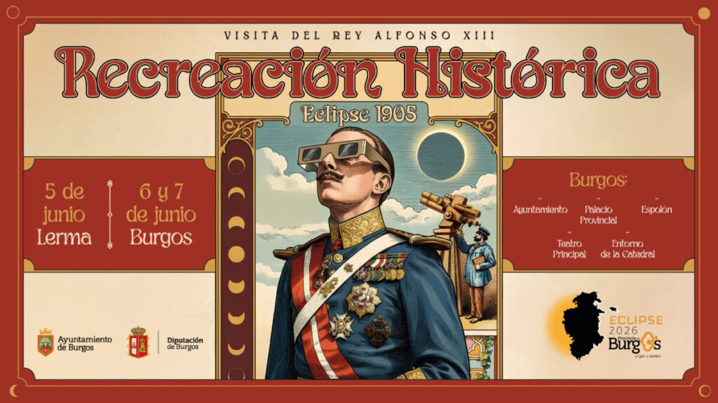La Diputación de Burgos se complace en presentar el programa oficial de la recreación histórica «Eclipse 1905», una iniciativa que invita a la ciudadanía a realizar un viaje en el tiempo para rememorar uno de los momentos más destacados de la historia reciente de nuestra provincia: la visita de Alfonso XIII con motivo del eclipse solar de 1905.